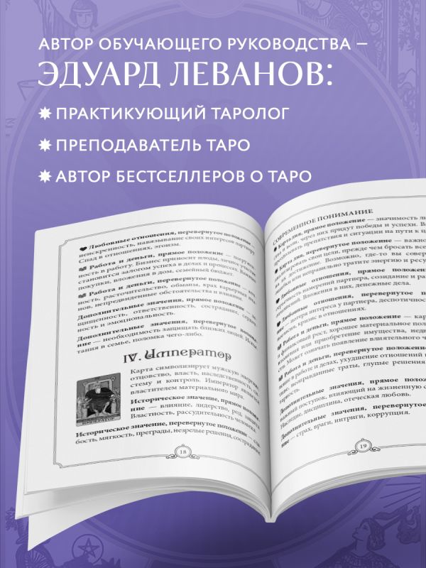 Освойте искусство чтения Таро с помощью специальной колоды для быстрого обучения, созданной на основе Таро Артура Уэйта и Памелы Колман Смит. Подсказки-толкования на каждой карте и детальное руководство специалиста по Таро и автора многочисленных книг Эдуарда Леванова помогут вам изучить Таро буквально «с нуля»!