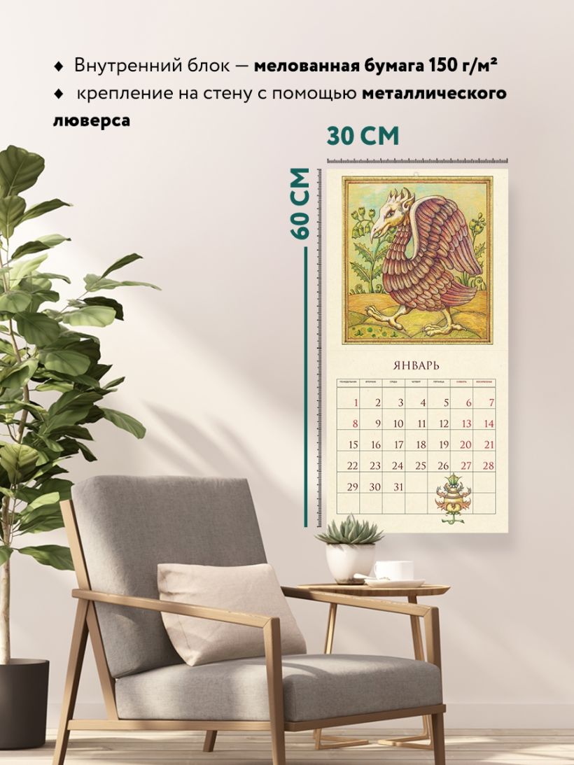 Наши настенные календари отличаются высоким качеством исполнения! Тщательно подобранные иллюстрации, напечатанные на глянцевой плотной бумаге, станут украшением дома. В календарной сетке найдется место для ваших планов: большие клетки позволят делать записи и организовать свой год! В календаре отмечены все государственные праздники.