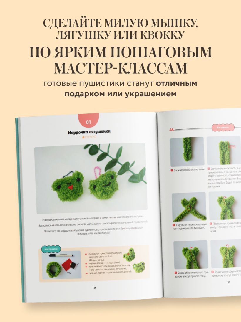 Погрузитесь в увлекательный мир творчества с синельной проволокой — мягким, ярким и податливым материалом, из которого легко создавать очаровательные игрушки! С этой книгой вы освоите технику скручивания и декорирования, шаг за шагом создавая 12 милых зверушек: панд, собачек, лягушек, мышек и даже квокк. Вы влюбитесь в процесс с первой игрушки и уже не сможете остановиться!