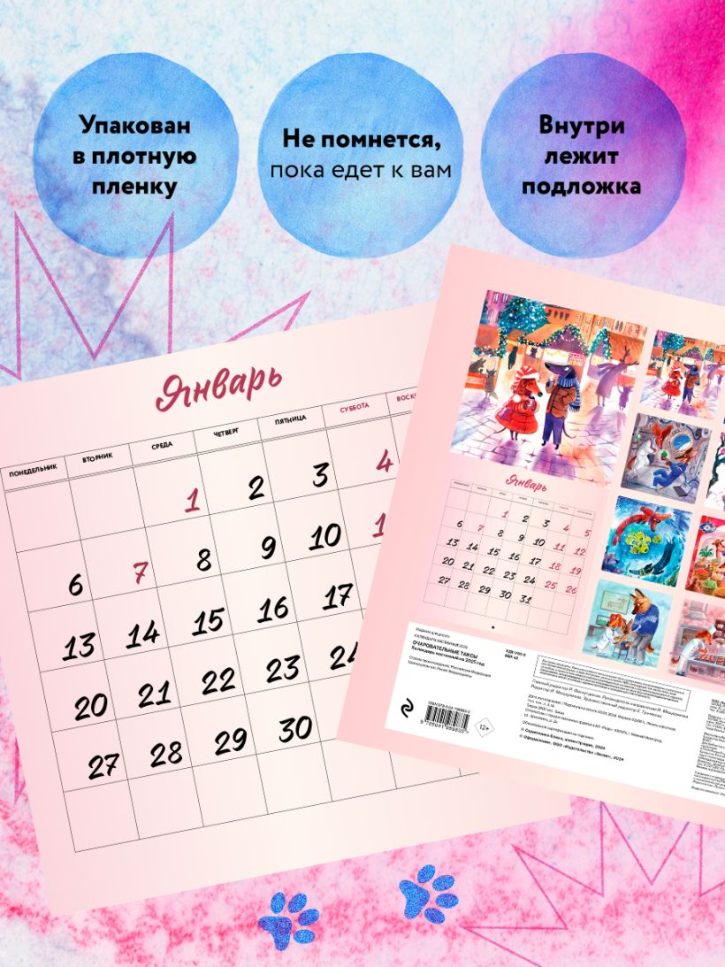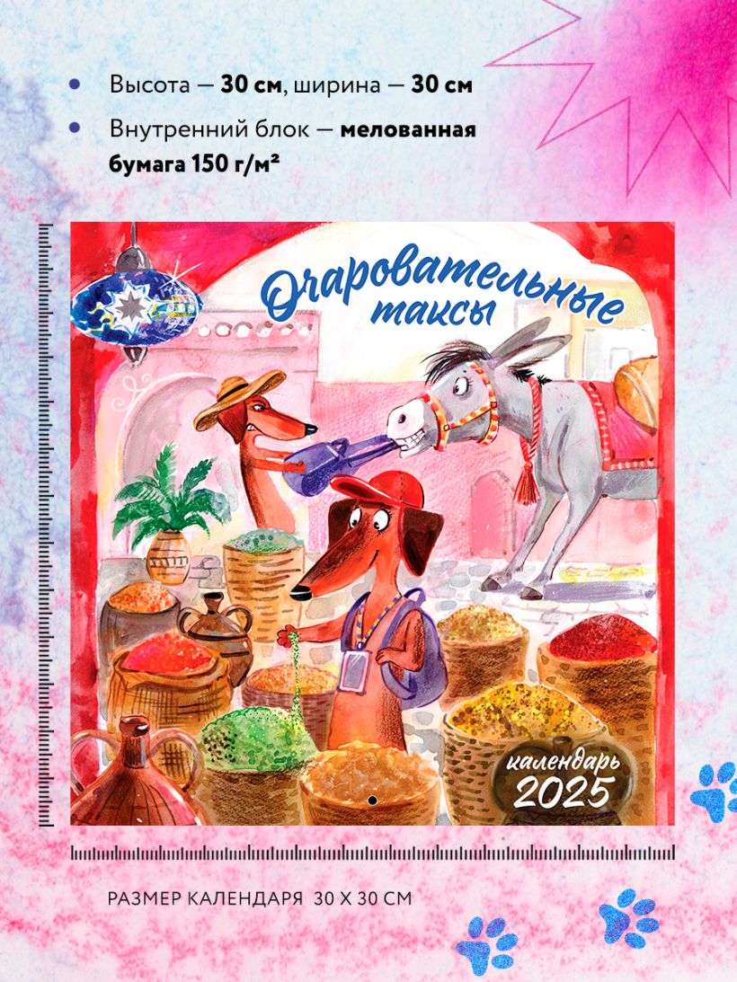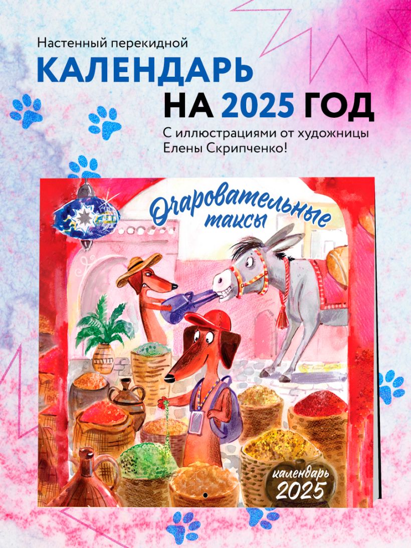 Самый очаровательный календарь нового года! Внутри календаря — сетка с основными праздниками и местом для записи важных событий, а также 12 авторских иллюстраций от художницы Елены Скрипченко! Удобный формат 300х300 мм позволит повесить его абсолютно везде, а веселые, смешные и обаятельные таксы будут радовать вас целый год! Впустите в свою жизнь немного волшебства и приключений с помощью этого календаря!