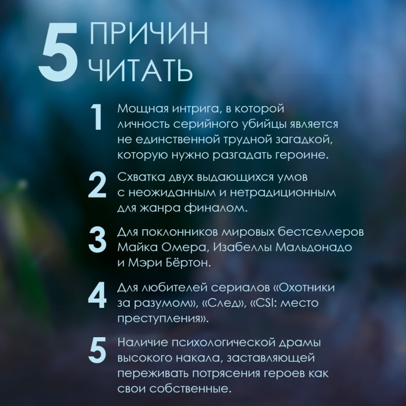 Для специального агента ФБР и опытного профайлера Лорел Сноу это дело с самого начала — личное. Не только потому, что Дженезис-Вэлли — ее родина. Но и потому, что подозреваемым оказался ее родной дядя Карл. Он работает могильщиком и старается избегать людей; многие боятся его из-за страшных шрамов на лице. Но племянница знает: Карл не способен на подобное. Используя свой уникальный ум и огромные знания, она старается создать максимально подробный профиль настоящего маньяка. В этом расследовании она столкнется с интеллектом…