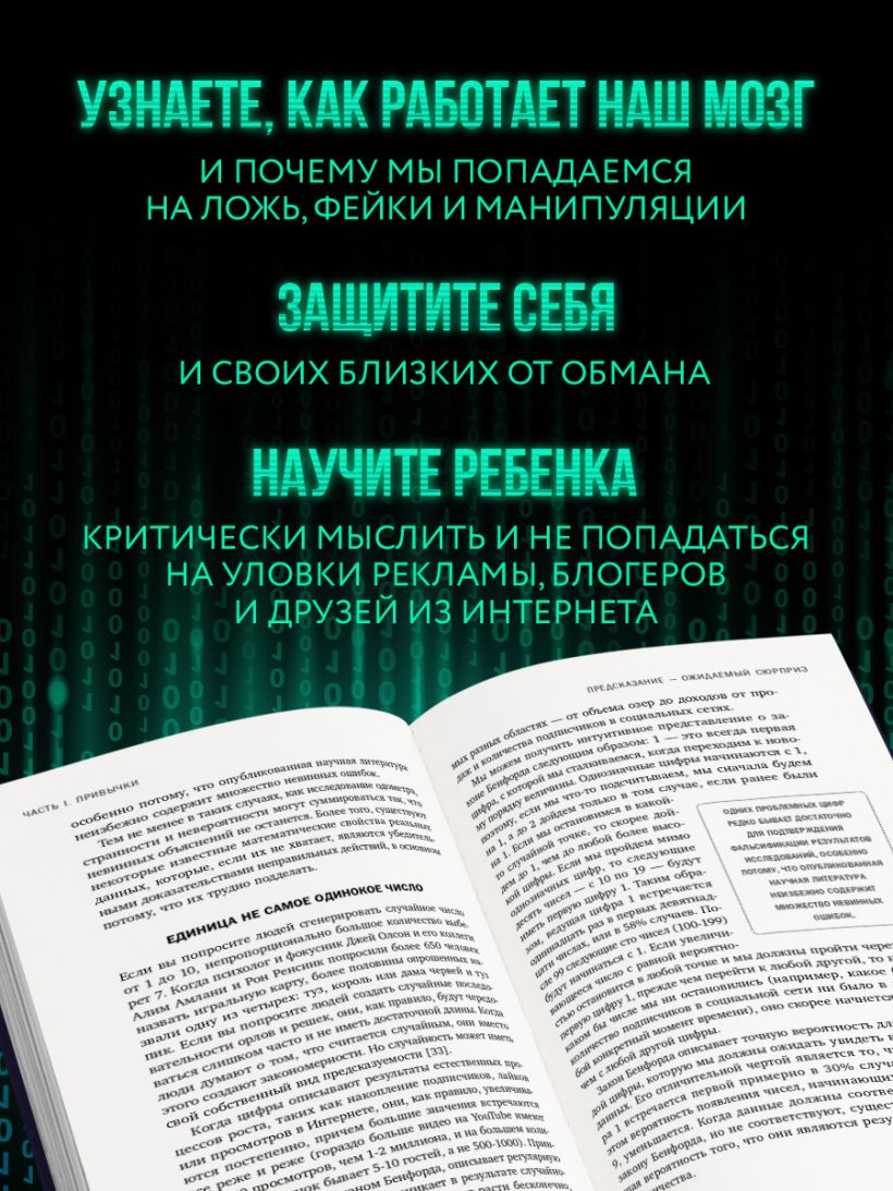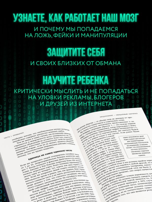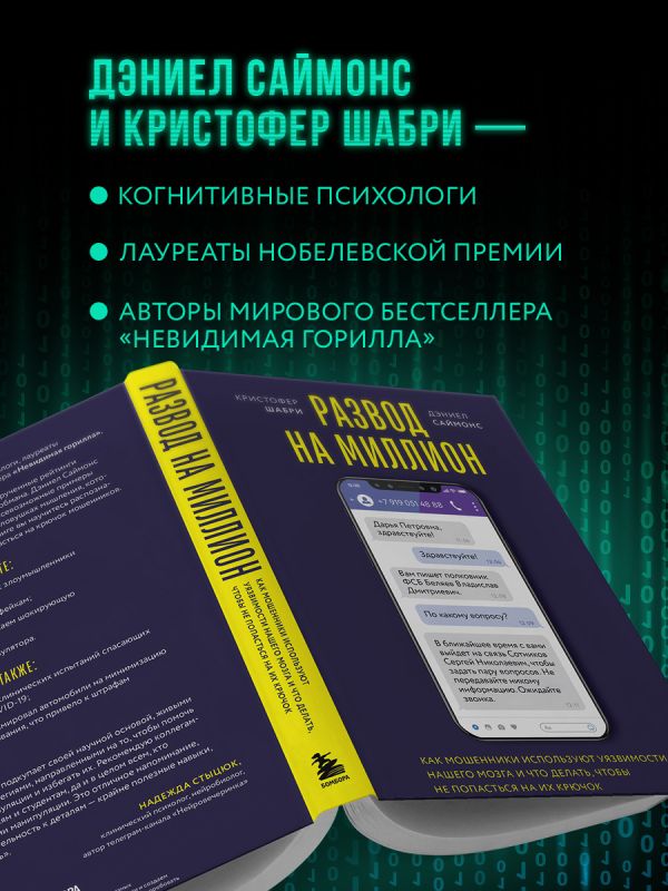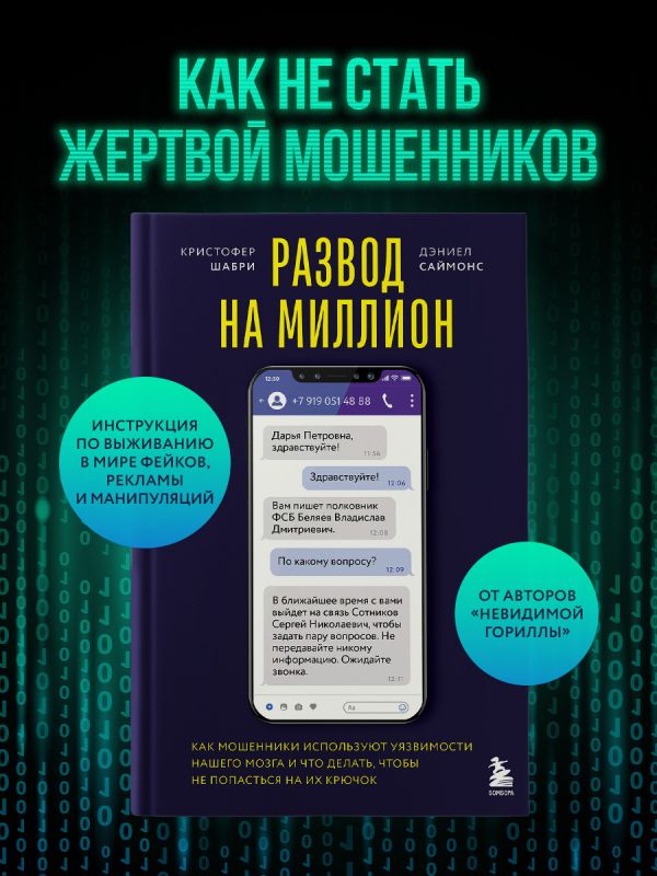 Телефонные мошенники, фейковые новости, накрученные рейтинги на маркетплейсах, подделки — наш мир полон обмана. Психологи Дэниел Саймонс и Кристофер Шабри в течение 10 лет изучали всевозможные примеры мошенничества, чтобы рассказать о ключевых ловушках мышления, которые делают нас уязвимыми. Например, склонность верить всему, что мы видим и слышим, пока не получим четких доказательств обратного, или сила авторитетного мнения. Благодаря этой книге вы научитесь распознавать обман сами и поможете близким не попасться на крючок мошенников.