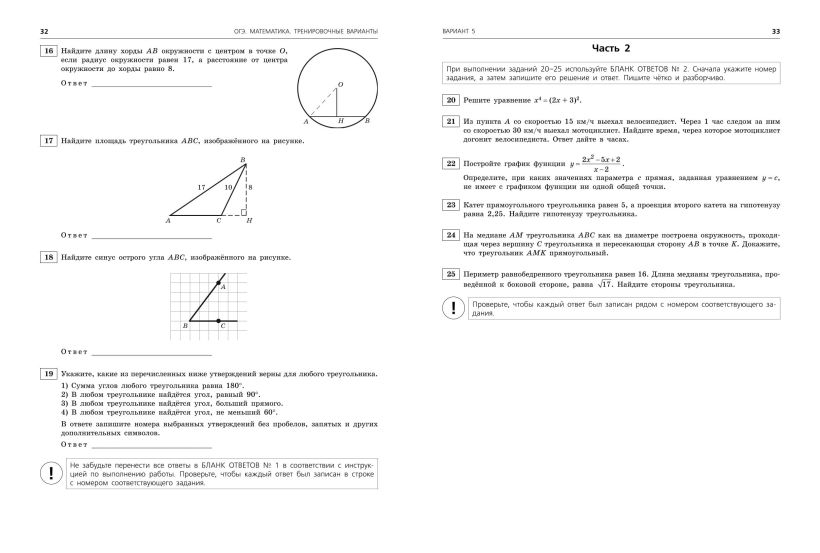 Пособие содержит 10 тренировочных вариантов по математике, соответствующих структуре экзаменационной работы и составленных с учетом требований ОГЭ. К каждому варианту приводятся не только ответы, но и подробные решения всех заданий!