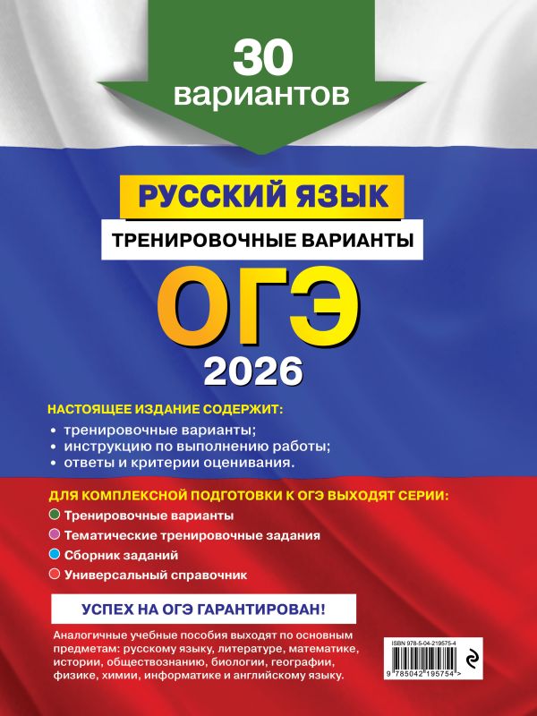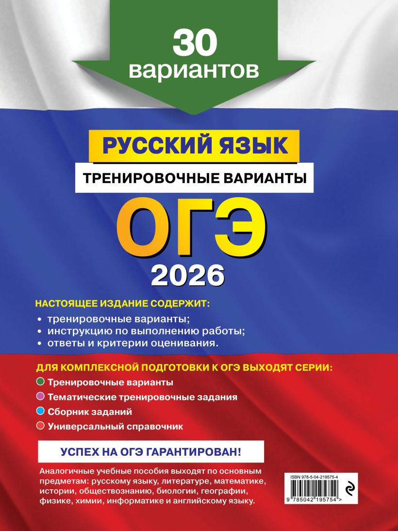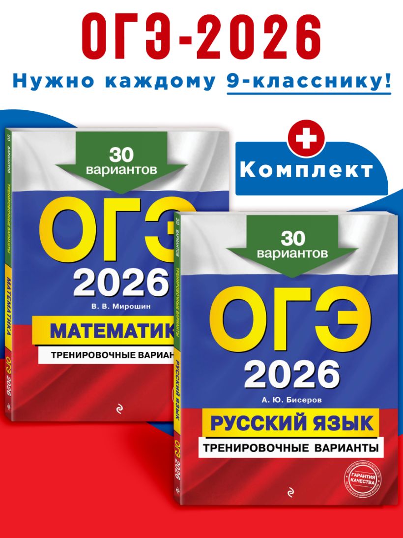 В комплект вошли книги: «ОГЭ-2026. Математика. Тренировочные варианты. 30 вариантов» и «ОГЭ-2026. Русский язык. Тренировочные варианты. 30 вариантов», адресованные выпускникам средней школы для подготовки к ОГЭ.