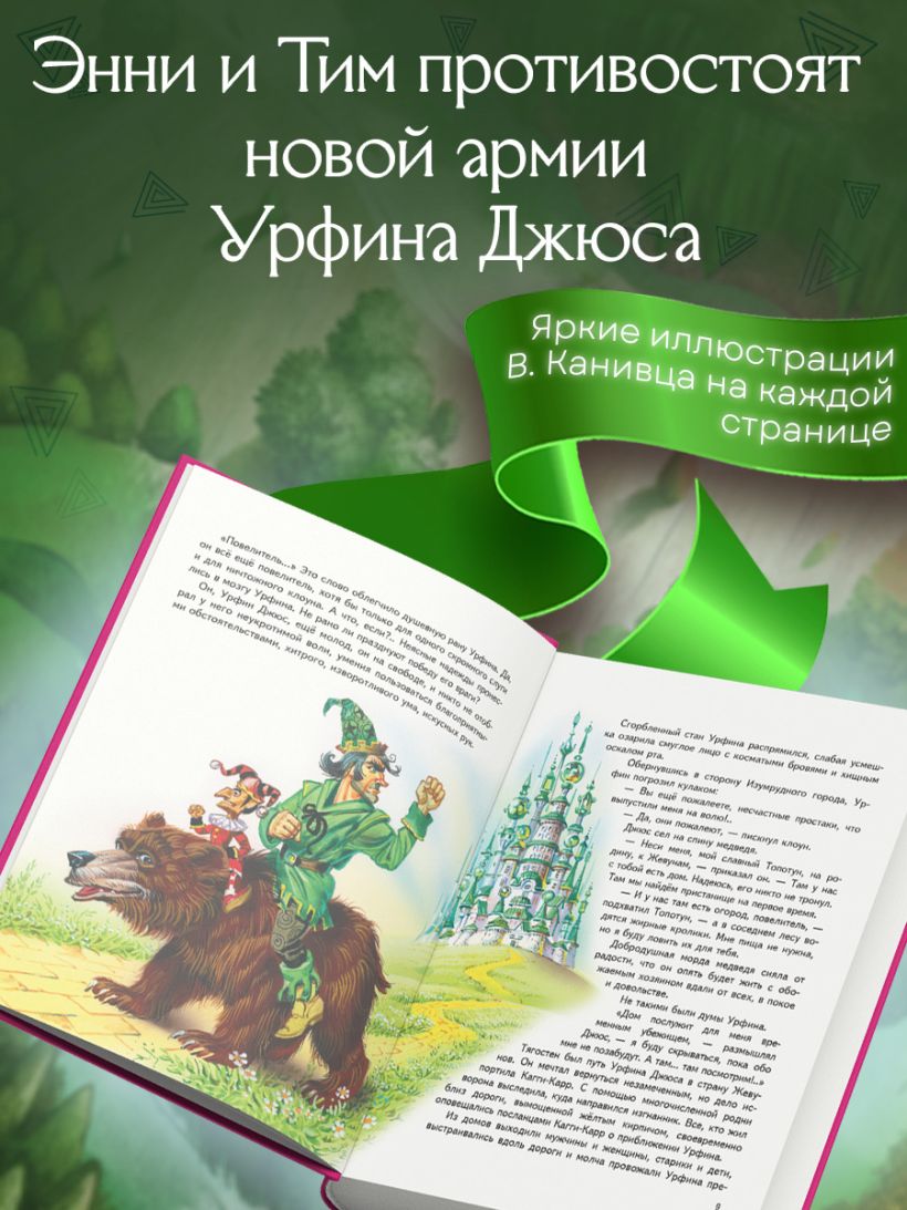 Четвёртую книгу сказочного цикла А. Волкова о волшебной стране ярко, красочно и с вниманием даже к мелким деталям проиллюстрировал современный художник В. Канивец.