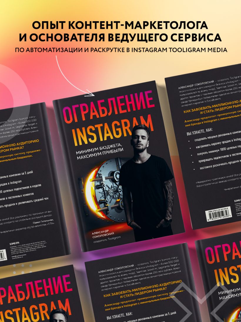 Внутри опыт контент-маркетолога и основателя ведущего сервиса по автоматизации Instagram. Инструменты для продвижения бизнес-аккаунта и личного бренда, стратегические рекомендации и технологические новинки — вся информация подкреплена разбором реальных бизнесов с миллионными оборотами. Вы не просто научитесь красиво оформлять аккаунты и писать продающие тексты, — вы научитесь сотавлять портрет целевой аудитории, понимать своего клиента, таргетировать его как рыбку на удочку и поражать в самое сердце своими креативными постами.