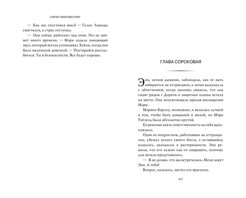 Карен пишет максимально живо, и у нее приятный, легкий слог. Тот самый случай, когда ты проглатываешь страницу за страницей, при этом каждая строчка откликается и пронзает твое сердце.