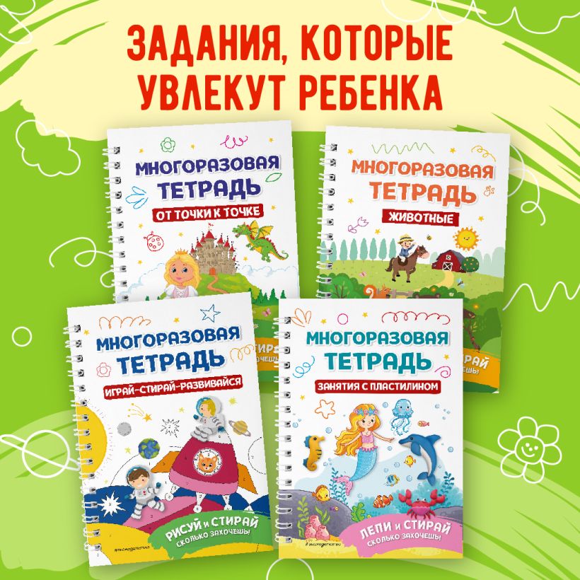Познавательное и увлекательное пособие позволит вашему ребенку не только весело, но и с пользой провести время. В издании ламинированные страницы, благодаря чему в книге можно рисовать фломастерами, стирать влажной салфеткой и писать снова! Бесконечное количество раз! Простые и интуитивно понятные задания помогут развить воображение, мышление и мелкую моторику малыша.