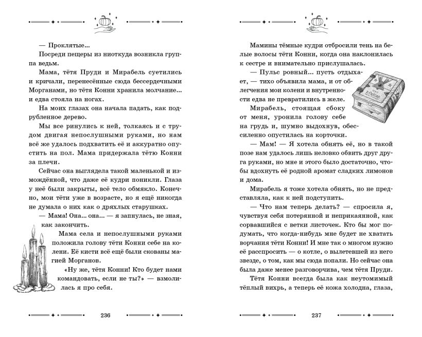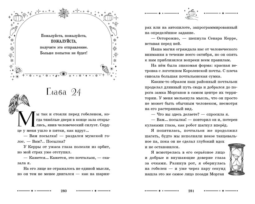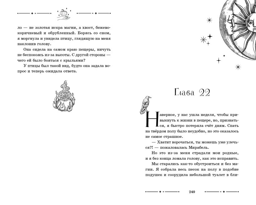 Волшебные чёрно-белые виньетки в блоке передают магическую атмосферу книги.