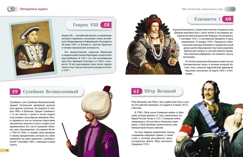 Энциклопедия на все 365 дней в году в самом популярном формате вопросов и ответов, разработанная специально для ребят 10—12 лет! В одной книге — целых 365 ответов на все вопросы школьника о самых знаменитых людях России и мира — великих изобретателях, политиках, деятелях науки и искусства — как прошлых веков, так и современности. Полезная информация изложена просто и доступно, поэтому чтение увлечёт ребёнка и легко наполнит новыми знаниями и интересом к изучению мира вокруг. А яркое оформление превратит эту энциклопедию в идеальную настольную книгу любознательного школьника.