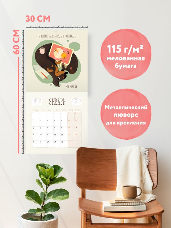 Наши настенные календари отличаются высоким качеством исполнения! Тщательно подобранные иллюстрации, напечатанные на матовой бумаге высочайшего качества, станут настоящим украшением дома, а в календарной сетке найдется место для ваших планов: большие клетки позволят делать записи и организовать свой год! В календаре также отмечены все государственные праздники.