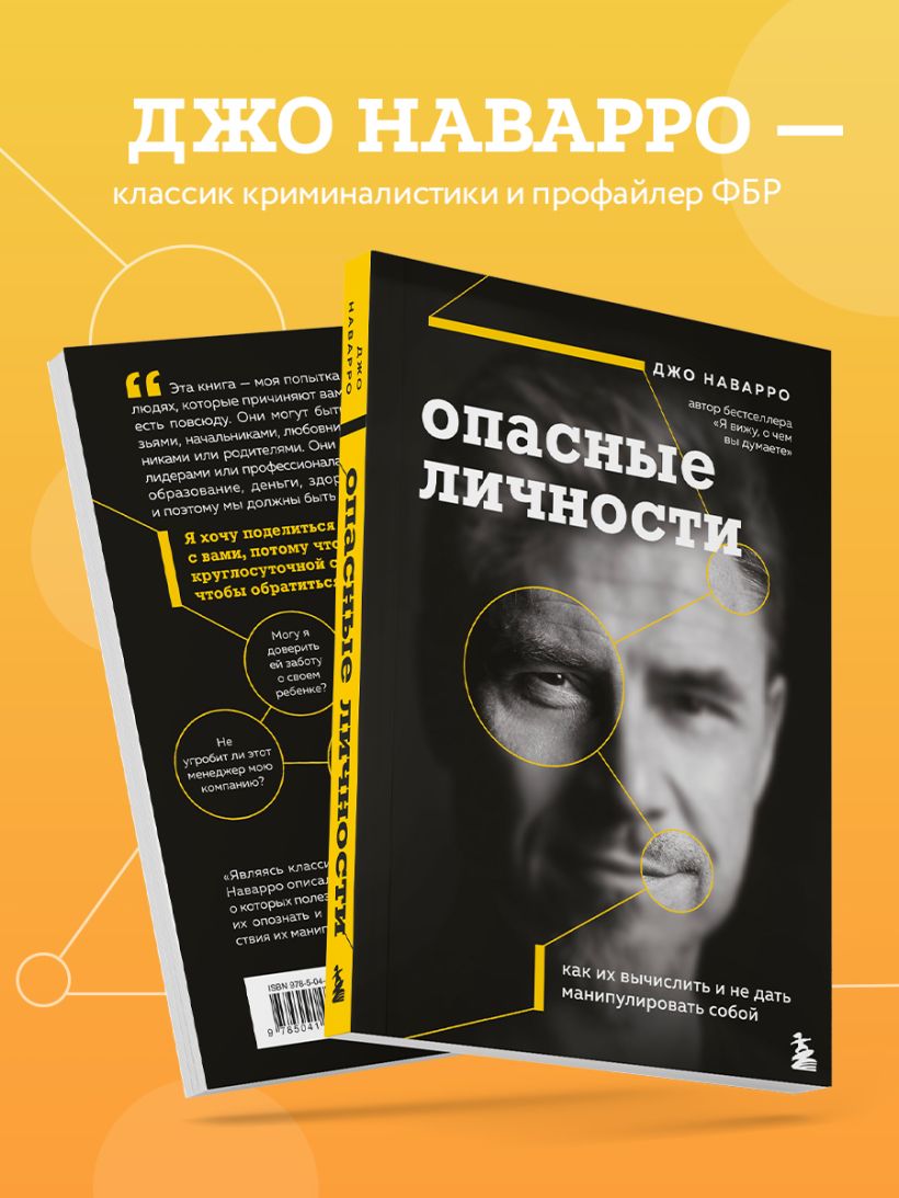 «Являясь классиком криминалистики и профайлинга, Джо Наварро описал четыре наиболее опасных типа личностей, о которых полезно знать всем. Эта книга поможет вам вовремя их опознать и даст эффективные инструменты противодействия их манипуляциям и намерениям». — Алексей Филатов, эксперт-профайлер, врач-психиатр