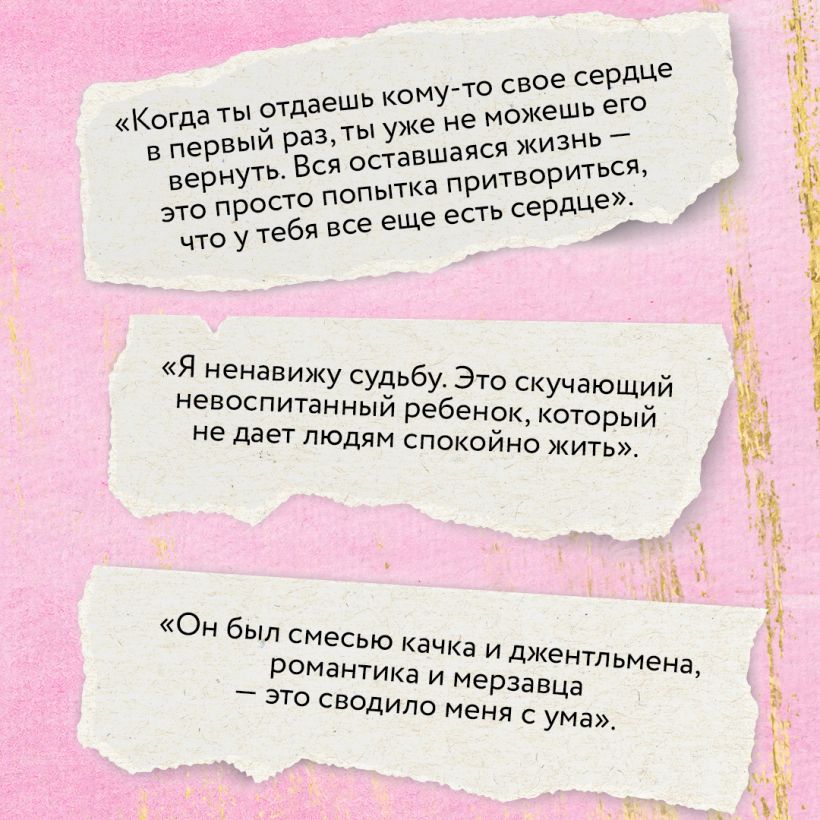 «Захватывающая история любви и предательства с неожиданными поворотами. Эмоциональное путешествие, которое доказывает: чтобы любить кого-то, нужно в первую очередь полюбить себя». — Дина Сильвер, автор романа One Pink Line