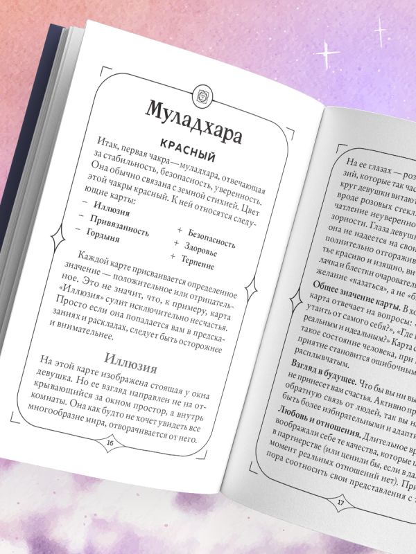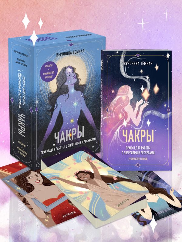 Оракул «Чакры» Вероники Тёмной, создательницы популярного сердечного оракула «Лес любви», это колода, позволяющая оценить состояние своих чакр и рассмотреть энергии, которые влияют на те или иные события, ваше самочувствие и ресурсы. Колода состоит из 42 карт с понятными, эмоциональными образами, которые легко читаются и находят отклик в сердце. Карты делятся на группы — по шесть карт для каждой чакры — и описывают как положительные, так и отрицательные ее проявления в нашей жизни.