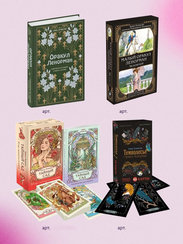 «Вестник судьбы» Анны Огински — малый оракул Ленорман в стиле романтичной классики — ответит на ваши самые волнующие и сокровенные вопросы и поддержит вас в минуты сомнений. «Вестник судьбы» — это: • 36 классических карт Малого оракула Ленорман. • 5 дополнительных карт для более точного толкования раскладов. • Руководство Анны Огински с подробным толкованием карт, правилами работы и коллекцией раскладов в электронном формате по QR-коду. • Ожившие образы колоды для медитаций и погружения в атмосферу колоды по QR-коду. • Удобная компактная коробочка для хранения карт, которую всегда можно носить с собой. «Вестник судьбы» станет идеальной «первой колодой» для начинающего практика и порадует опытных поклонников классического стиля.