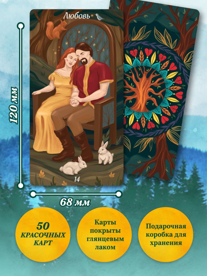 Лес Любви. Колода-оракул для сердечных вопросов (50 карт и руководство для гадания в подарочном футляре)
