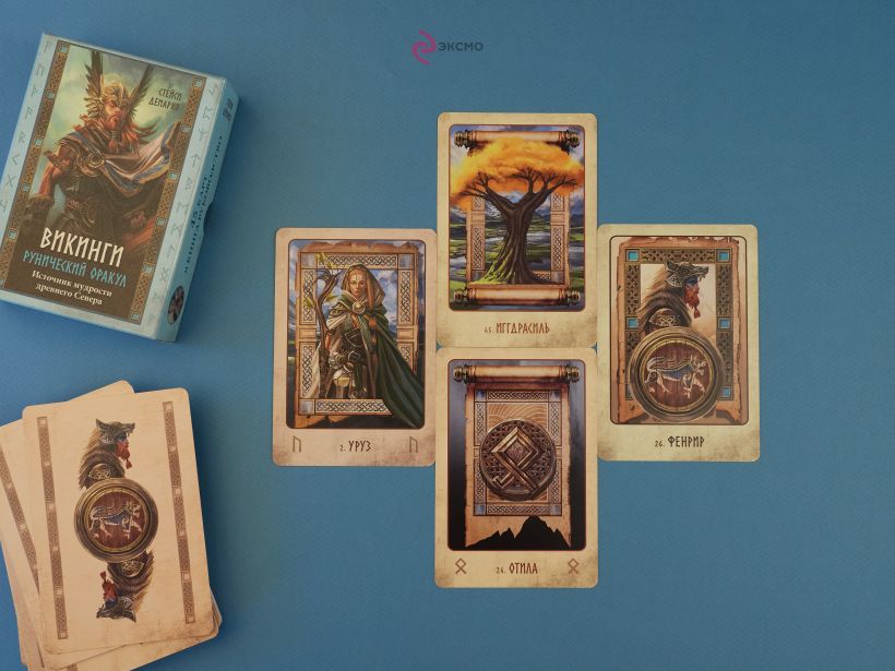 • колоду из 45 карт, содержащую руны Старшего Футарка, мифологические образы, изображения богов и сил природы