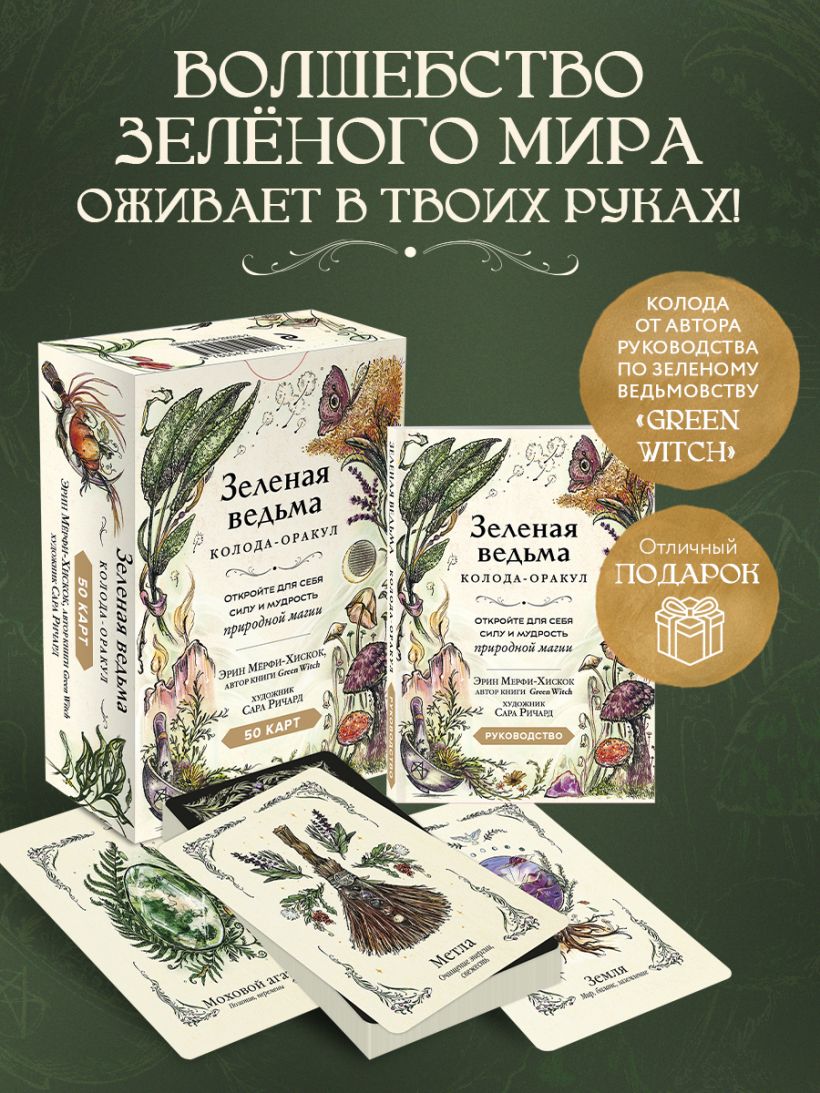 Оракул «Зеленая ведьма» Эрин Мёрфи-Хискок — волшебный инструмент, который откроет для вас чарующее царство зеленого колдовства, станет мостом между миром человека и миром природы и укрепит вашу глубинную связь с природными стихиями.