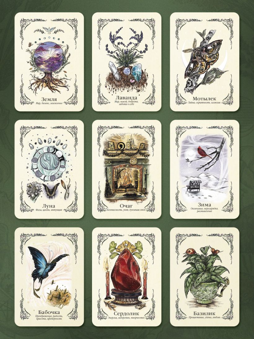 Оракул «Зеленая ведьма» — это 50 карт, которые созданы художницей Сарой Ричард и предназначены для пробуждения интуиции и усиления магии.