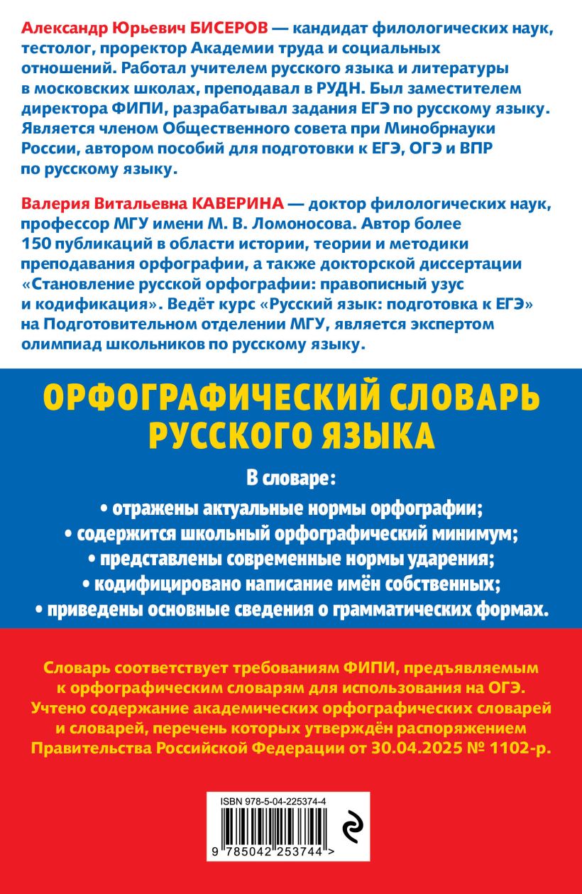 Орфографический словарь русского языка содержит более 20 000 единиц (слов и словосочетаний) с необходимой грамматической информацией и ударением. Даны характерные для соответствующих форм контексты, исходя из которых удобно определиться с выбором нужного слова. Учтены требования нового ФГОС, утвержденного приказом Минпросвещения России от 31.05.2021 № 287, рекомендации ФИПИ по проверке норм орфографии, содержание академических орфографических словарей и словарей, перечень которых утверждён распоряжением Правительства Российской Федерации от 30.04.2025 № 1102-р. Книга подготовлена с учетом результатов ЕГЭ и ОГЭ 2024 г. и Тотального диктанта 2025 г.