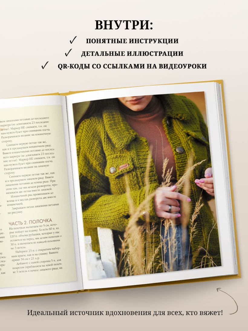 Настоящая энциклопедия современной вязальщицы, созданная с любовью, опытом и вниманием к деталям. Если вы только берёте в руки спицы или уже уверенно вяжете, но хотите углубить знания, эта книга станет вашим персональным проводником в мир осознанного, стильного и вдохновляющего вязания. Автор — Дарья Чичимова, блогер с 30-летним стажем вязания, преподаватель и популярный автор видеокурсов, собрала в одной книге всё, что помогает не просто вязать, а понимать, что и почему вы делаете. Для кого эта книга: - Для абсолютных новичков, которые ни разу не держали спицы в руках. - Для любителей, которые хотят перейти от вязанию по чужим описаниям к осознанному вязанию. - Для продвинутых, кто хочет структурировать знания и освоить больше техник и направлений. - Для творческих людей, которые любят учиться новому и ценят красивые, понятные книги. Что вы получите: - Полное понимание материалов и инструментов: от современных видов пряжи до вспомогательных инструментов. - Навыки работы с основными приёмами вязания — лицевыми и изнаночными, убавками и прибавками, патентными петлями, вязанием по кругу. - Уверенность в чтении схем и работе с инструкциями. - Знание многоцветного вязания: жаккард, интарсия, мозаика, энтерлак. - Владение техниками декора — помпоны, шнуры, бахрома, кисти, вязание с бисером. - Способность исправлять ошибки, корректировать плотность, перевязывать и даже работать с повторно использованной пряжей. - Навык ухода за готовыми изделиями: стирка, блокировка, влажно-тепловая обработка. - 9 подробных мастер-классов: от простой повязки до стильного кардигана. Почему именно эта книга: - Максимум практики и подробностей — всё, что нужно, чтобы начать и развиваться. - Современный, вдохновляющий подход — без устаревших терминов и «бабушкиных» страшилок. - Идеальная подача материала — ясно, красиво, последовательно, с пошаговыми фото. - Актуальные российские бренды пряжи и инструментов — всё можно найти и купить легко. - Вдохновляющая подача — читать хочется, учиться приятно, а вязать — одно удовольствие!