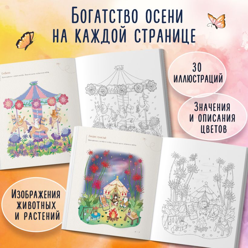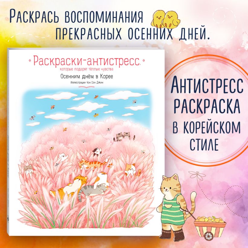 Яркие цвета осенней листвы и уютные пейзажи Кореи создадут тёплую атмосферу, которая напомнит о прекрасных мгновениях жизни. Каждая страница предлагает вам возможность раскрыть свои художественные способности и погрузиться в медитативный процесс раскрашивания.