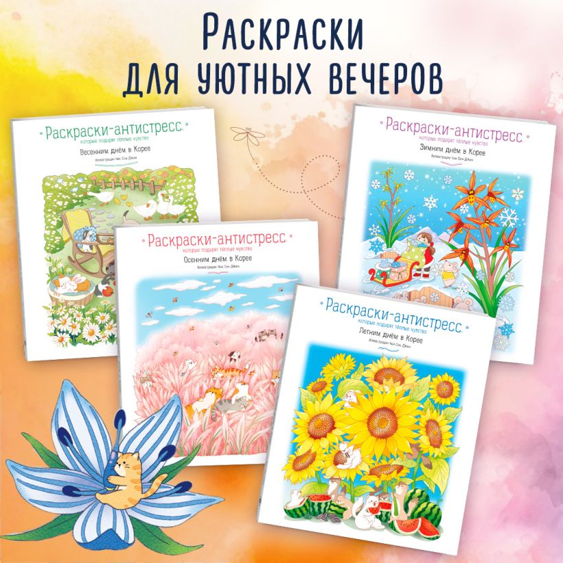 Хозяйка двух очаровательных котиков всегда мечтала погулять с ними по своим любимым местам живописного Сеула. Вот только в Корее выгуливать домашних кошек запрещено... Так появилась эта раскраска от популярнейшего корейского иллюстратора Пан Джису, художника обложек ваших любимых романов: «Добро пожаловать в "Книжный в Хюнамдоне"», «Магазин шаговой недоступности», «Книжная кухня» и многих других! 60 уютных иллюстраций, где котики Тони и Тор путешествуют по тихим корейским улочкам и самым волшебным местам Сеула, наслаждаются красотой всех времен года и приглашают каждого читателя присоединиться к их прогулке. Раскрасьте обложку любимой книги: специальные версии иллюстраций к «Добро пожаловать в "Книжный в Хюнамдоне"», «Магазин шаговой недоступности», «Книжная кухня», где котики посещают места из культовых хилинг-романов! Милейшая хилинг-раскраска для поклонников очаровательных корейских историй и любителей котиков. Нежные иллюстрации для каждого сезона с самыми уютными местечками волшебного Сеула.