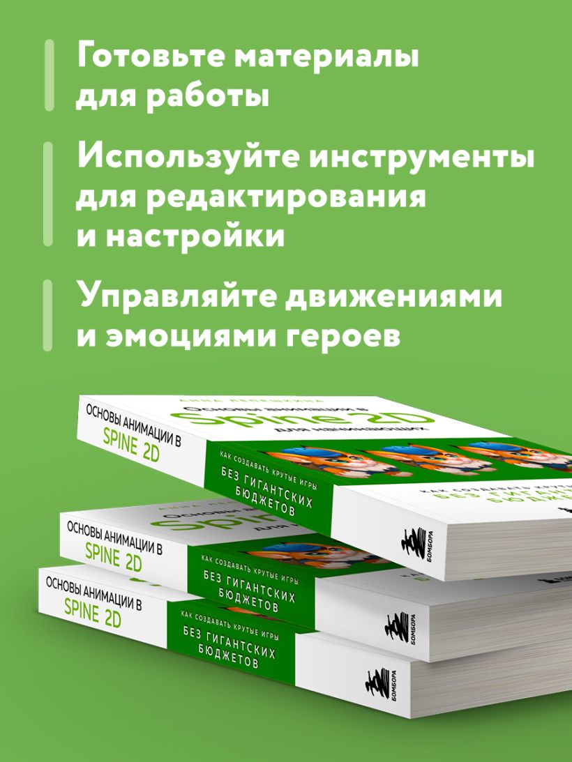 Эта книга написана для художников, дизайнеров и программистов, которые хотят создавать высококачественную анимацию персонажей в играх и других проектах. Она поможет вам сократить время на создание анимации и улучшить качество работы благодаря широкому набору инструментов и функций Spine 2D.