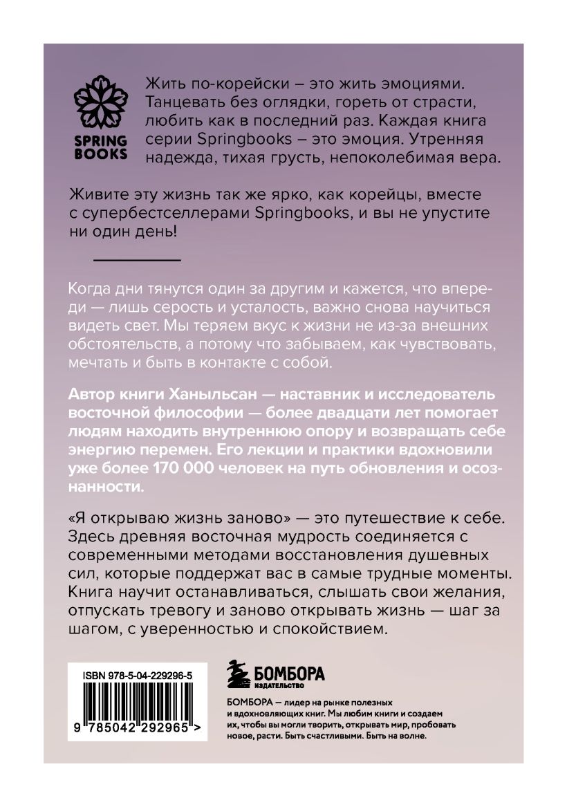 Когда дни кажутся серыми и утомительными, важно вновь почувствовать, что жизнь может раскрыться по-новому. Эта книга — приглашение начать заново: научиться останавливаться, слышать себя, отпускать напряжение и возвращать в повседневность легкость и ясность. Опираясь на многолетний опыт работы, Ханыльсан объединяет мудрость восточной традиции и современные практики восстановления. Его подход помогает вернуть внутреннюю опору и мягко войти в период перемен с большим доверием к себе.