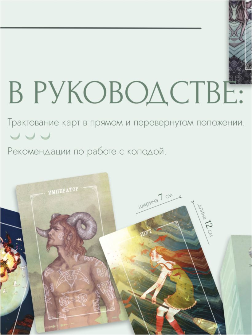 • Цветная книга-руководство со значениями всех Старших и Младших арканов в прямом и перевернутом положении.