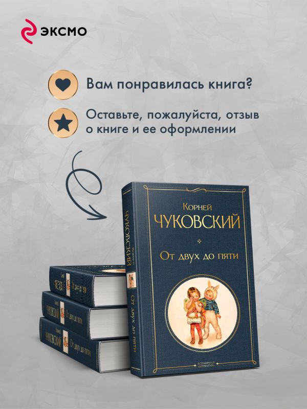 Корней Чуковский (1882—1969) — писатель, критик, литературовед и основоположник детской литературы XX века. В книге «От двух до пяти» он рассуждает о состоянии ребенка, о его душе и мечтах, а также о детской речи. Мысли о том, как наши дочери и сыновья воспринимают мир и любознательно относятся к каждому открытию, переплетаются с увлекательными рассказами о разных курьезах.
