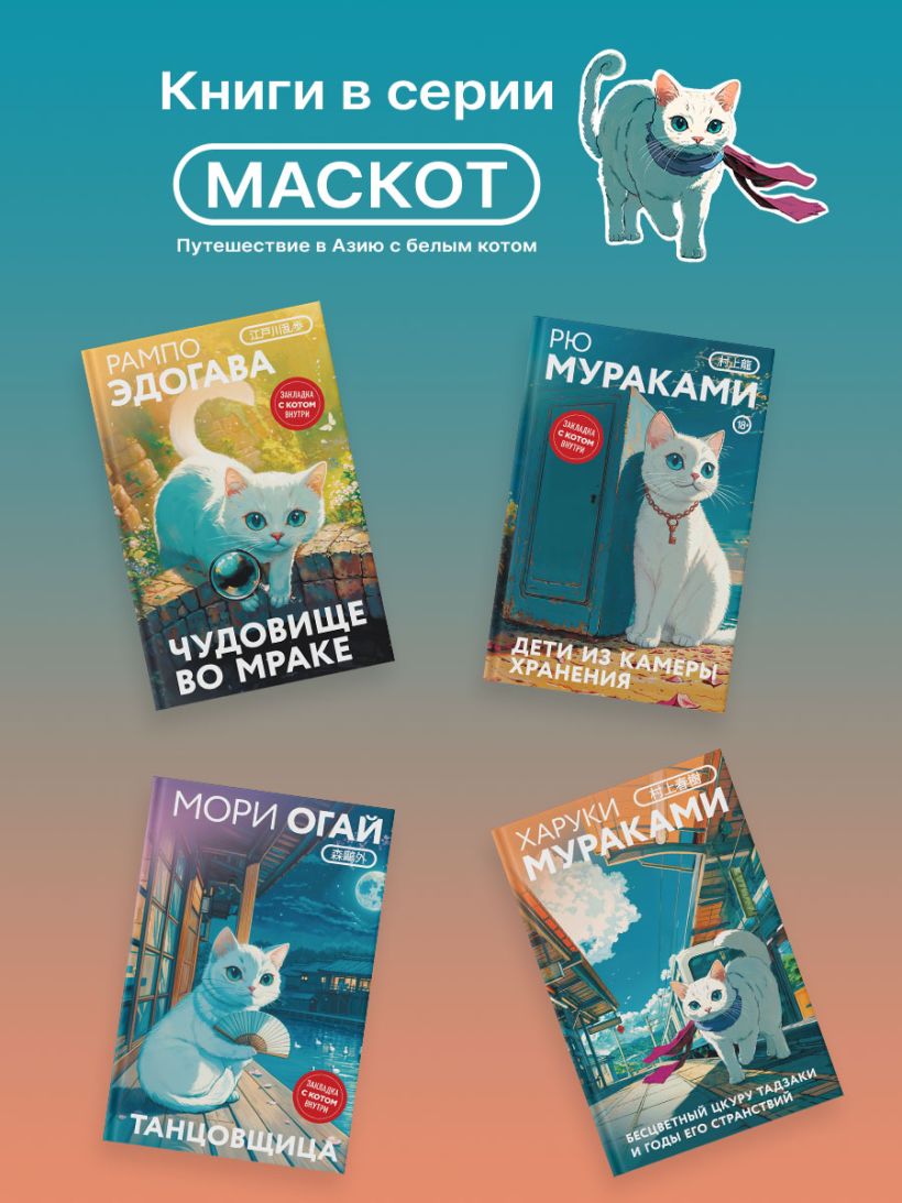 Белый кот Мичи — маскот серии. Вместе с вами он оправится в книжное путешествие по странам Азии: от чарующей Японии до загадочного Тайваня. Мичи будет поджидать вас на страницах книги. Вместе с ним вы разделите впечатления от прочитанного. На память о путешествии Мичи подарит коллекционную закладку.