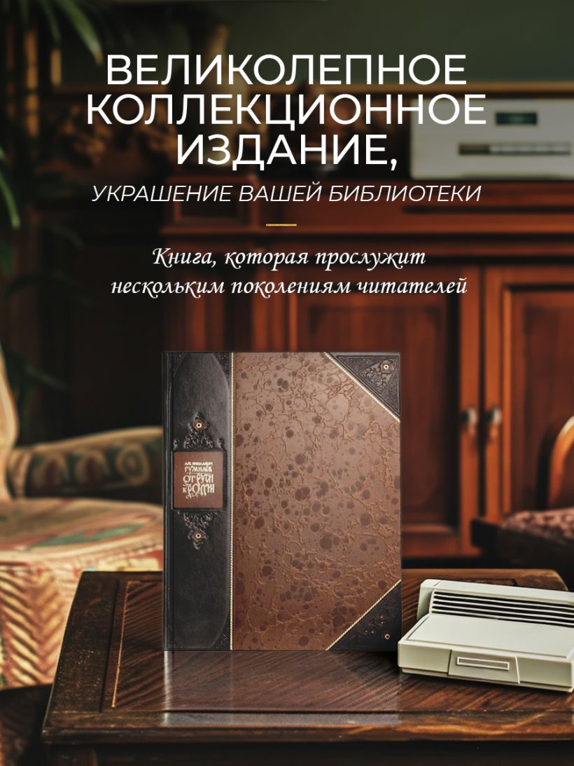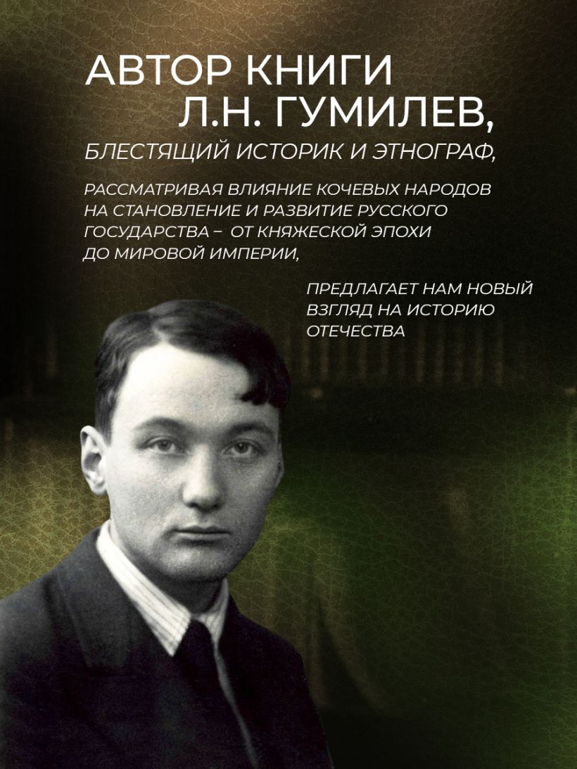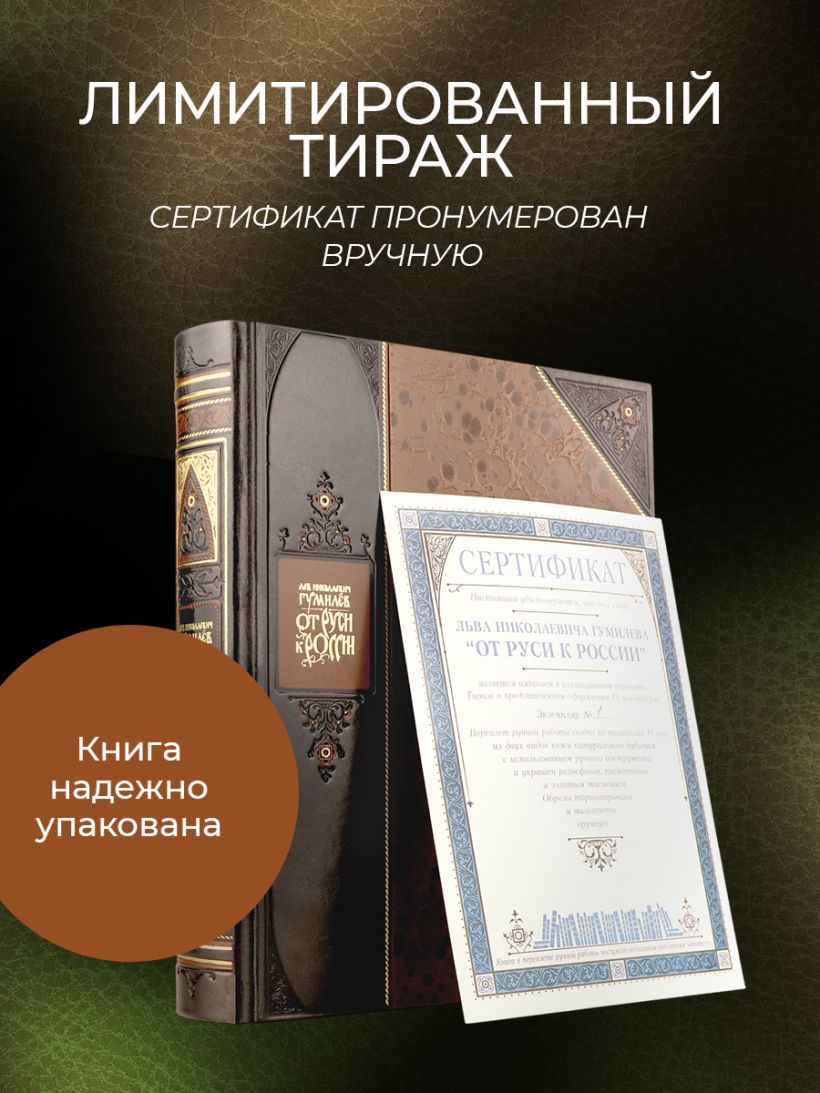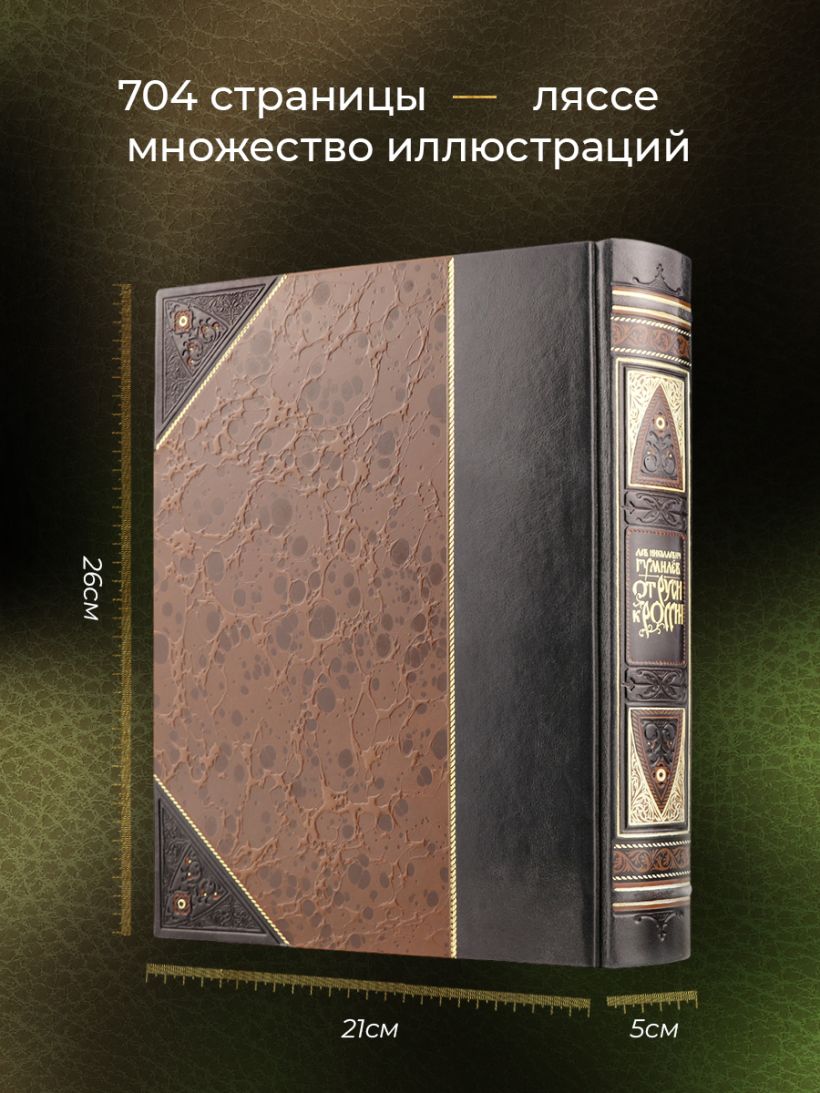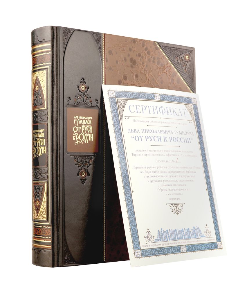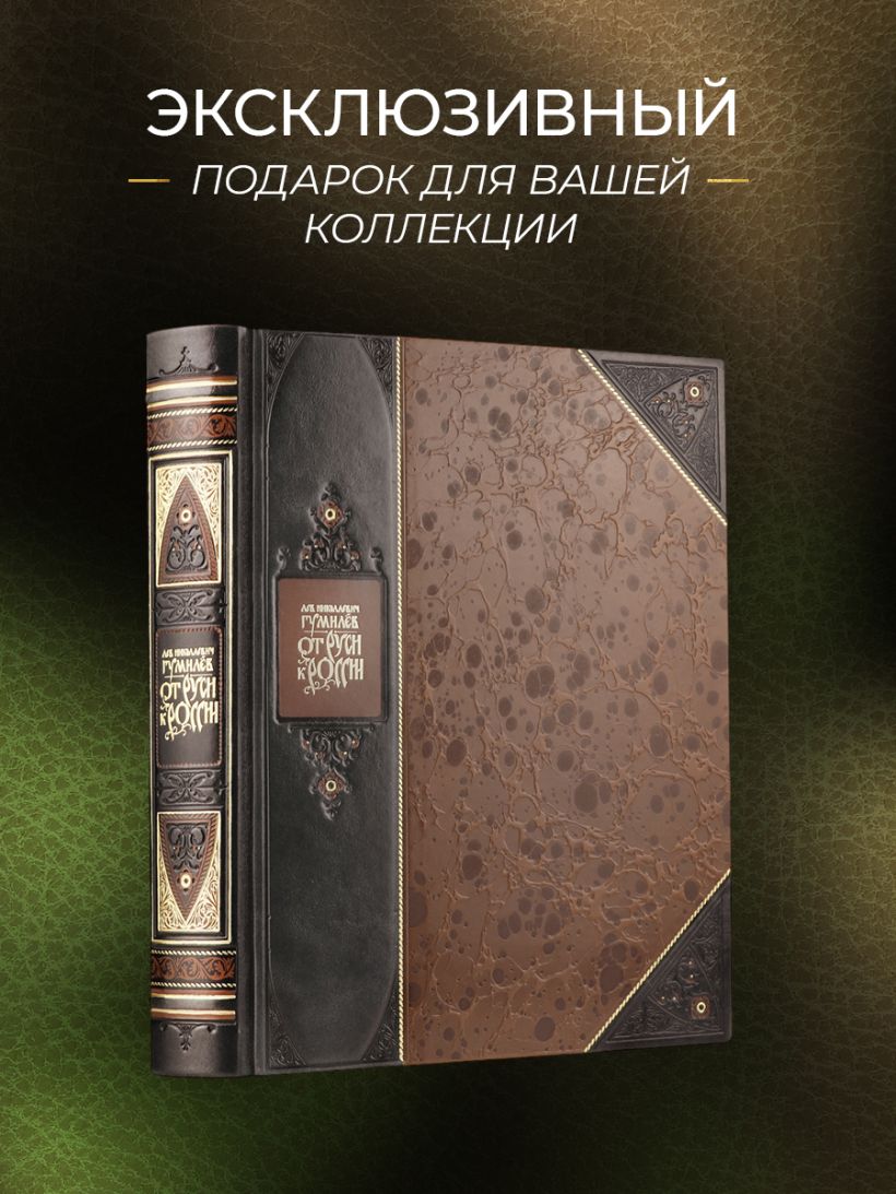"От Руси к России Льва Гумилева". Книга в коллекционном переплете из двух видов кожи с рисунком мраморной бумаги и с изящным тиснением в стиле 19 века
