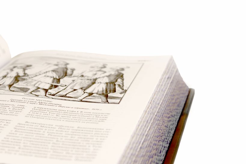 Книга в коллекционном составном переплете с тиснеными уголками в стиле XIX века.