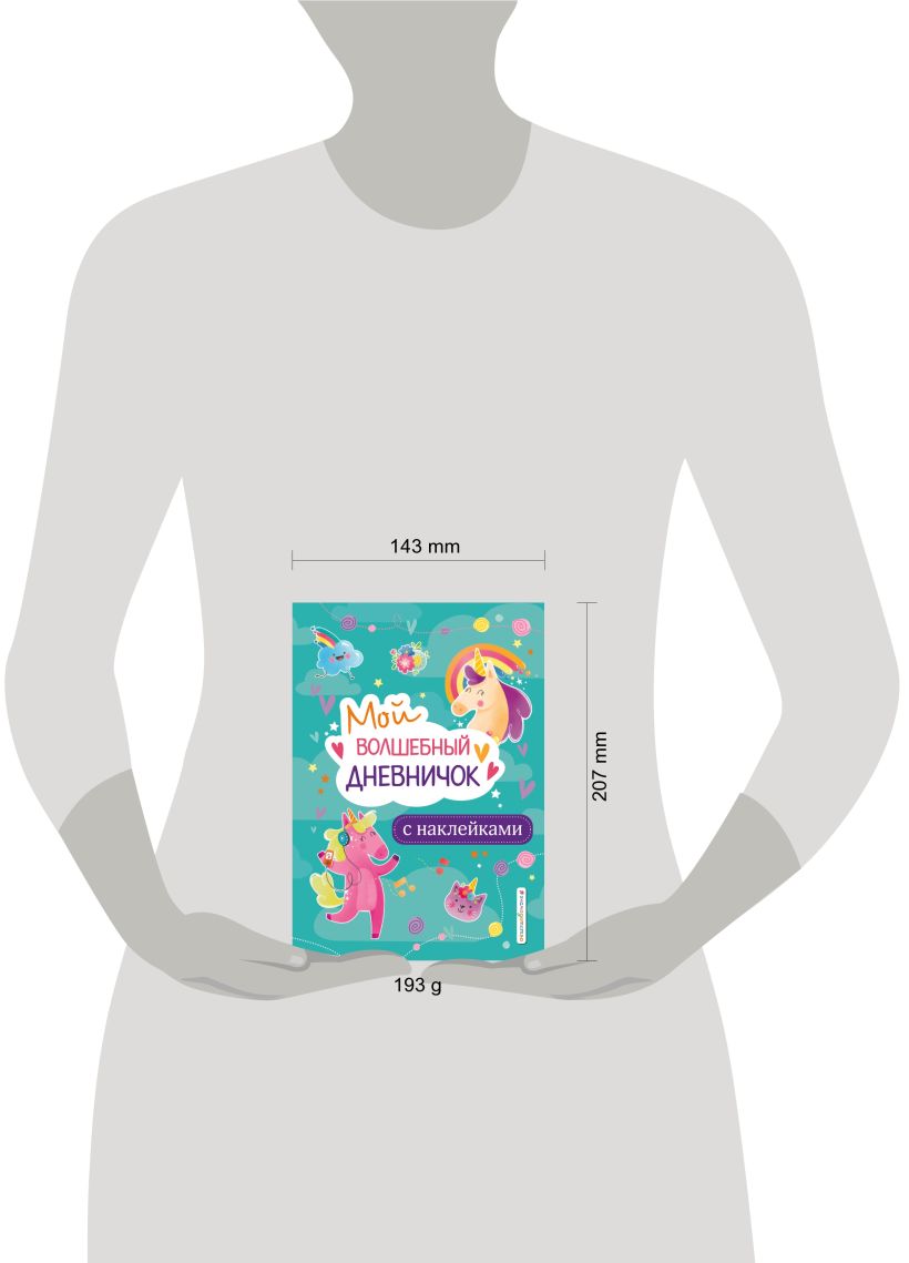 В дневничке юная мечтательница найдет целый разворот наклеек с единорожками и радугой. Они станут отличным украшением творческих страниц.