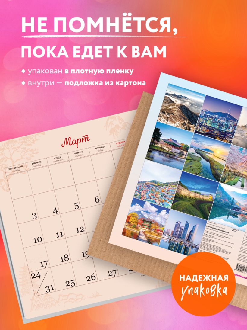 В этом календаре собраны самые знаковые и любимые места посетителей этой прекрасной Страны Утренней Свежести — от аутентичных районов Сеула до невероятных природных красот острова Чеджу.