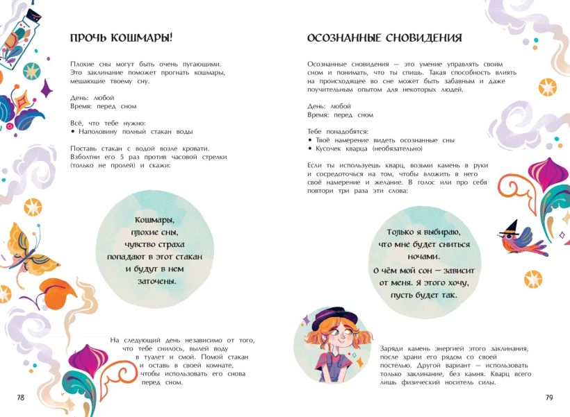 - изучишь простые заклинания на защиту от ночных кошмаров и задир, поиск новых друзей, притягивание удачи и сможешь придумать свои!