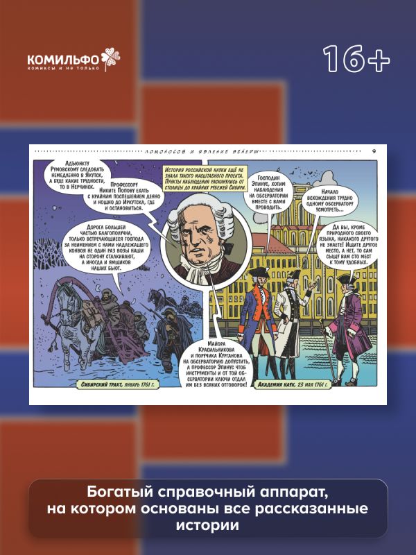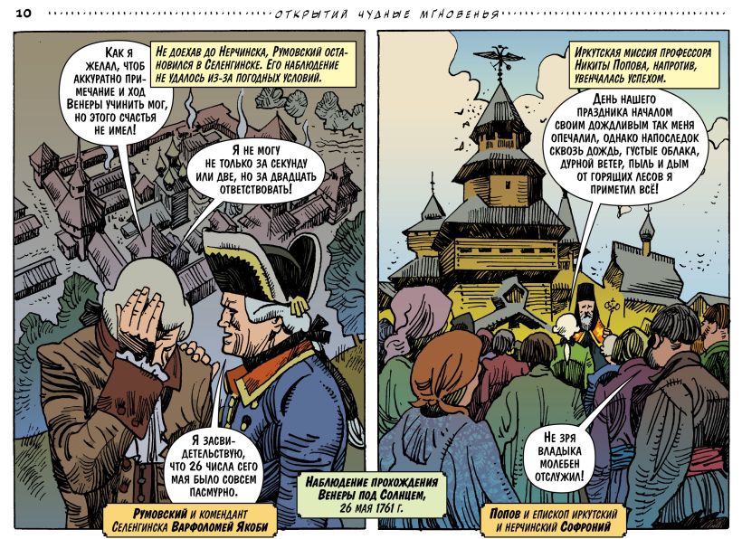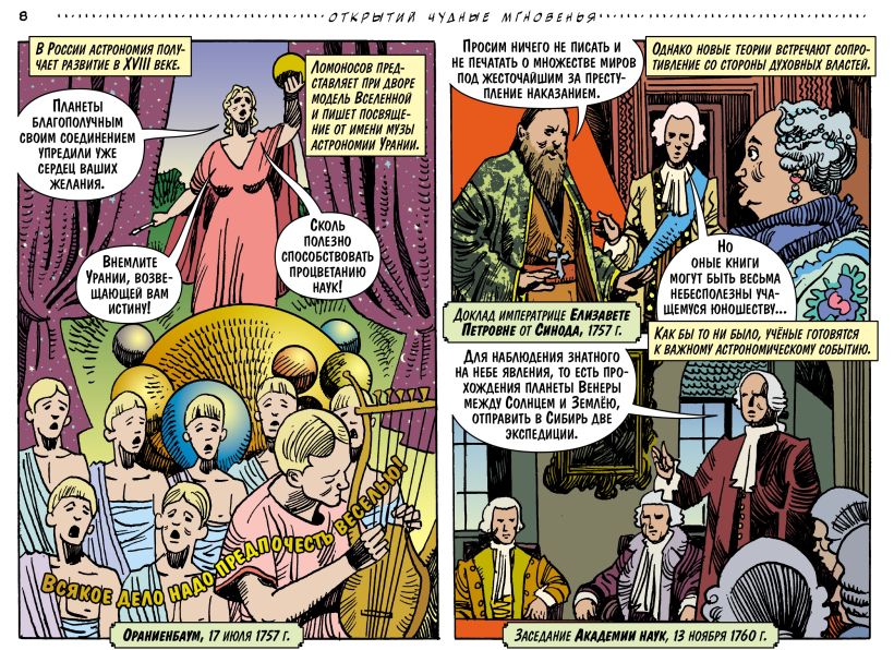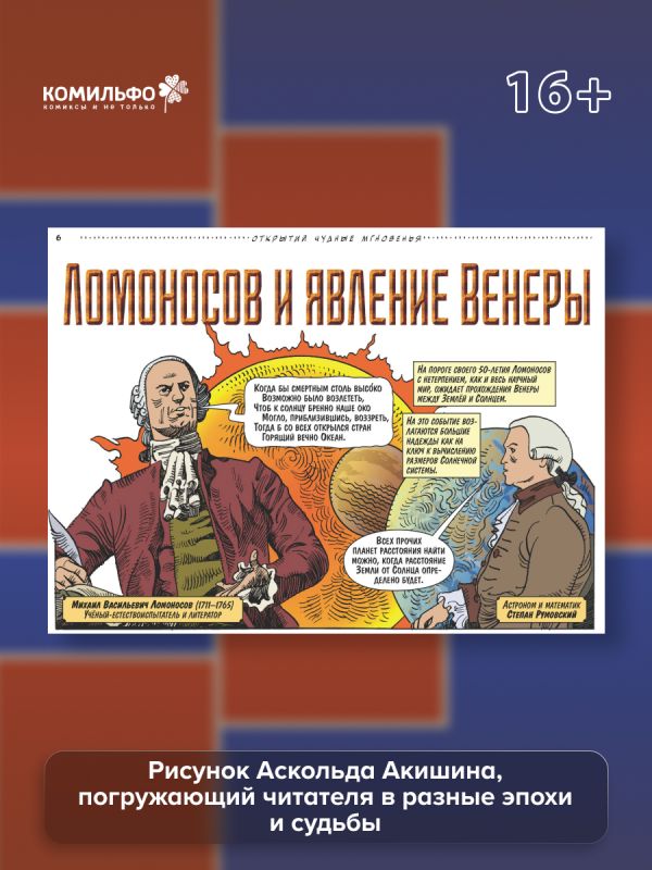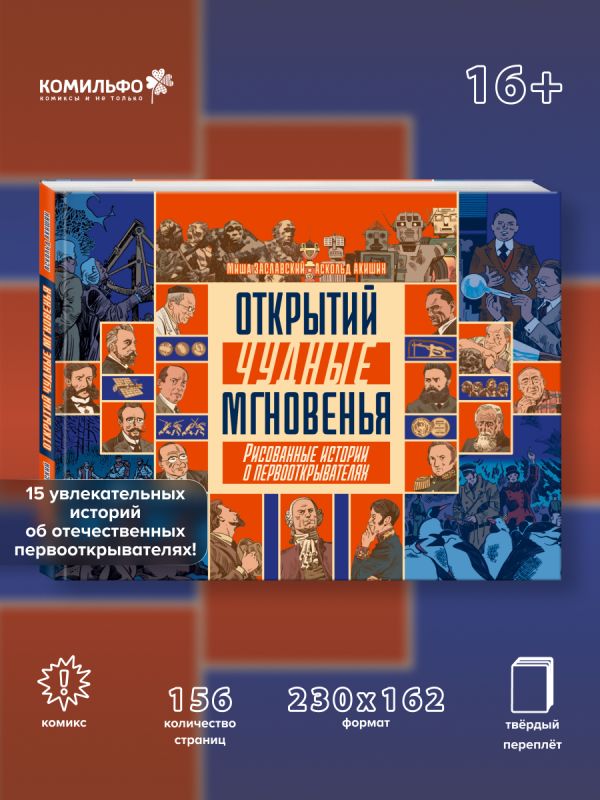 Волнение первопроходца, радость открытия, восторг обретения новых истин — эти чувства выпадали на долю всякого, кто расширял границы познания человечества об окружающем мире. Рисованные рассказы с рисунками классика российского комикса Аскольда Акишина по сценариям автора многих образовательных проектов Миши Заславского посвящены отечественным первооткрывателям в различных областях науки и культуры. Изначально публиковавшиеся в журнале «Юный эрудит», эти истории основаны на документах разных времён и современных исследованиях. Формат документального комикса помогает восстановить сцены событий, облик их участников и услышать их голоса (в комиксах нет ни одной вымышленной реплики).