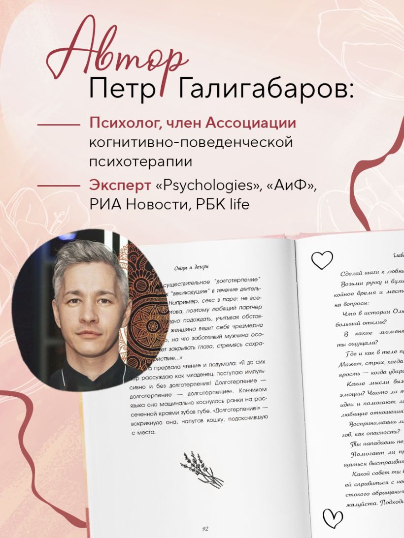 Петр Галигабаров, дипломированный психолог, рассказывает трогательные и вдохновляющие истории 11 героинь. Эти женщины, как и многие из нас, борются с ревностью, страхами и созависимостью. С помощью когнитивно-поведенческой и арт-терапии они преодолевают детские травмы, связанные с отцами, и учатся строить здоровые отношения с собой и окружающими.