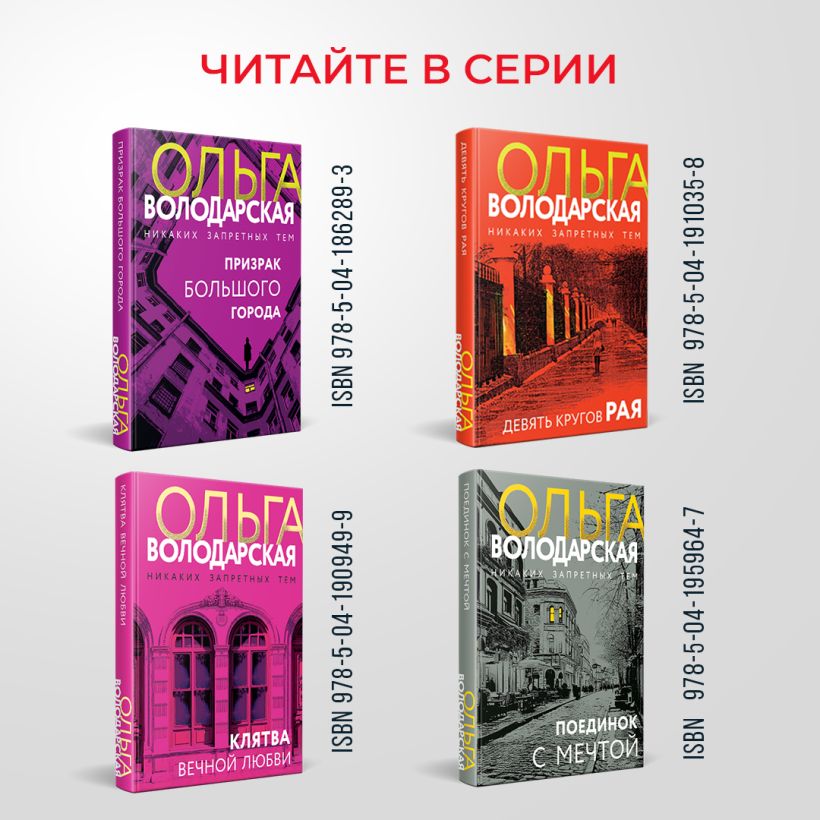 Романы Ольги Володарской — остросоциальные детективы, в которых автор препарирует все стороны жизни современного общества, ничего не скрывая и ни о чем не умалчивая. Ее книги написаны так увлекательно, что оторваться просто невозможно. Яркий сочный язык и блестящий авторский стиль создают неповторимую атмосферу, в которую с головой погружается читатель.