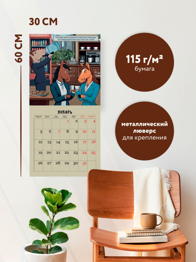 Пахать как лошадь. Трудолюбивый коллектив. Календарь настенный на 2026 год (300х300 мм)