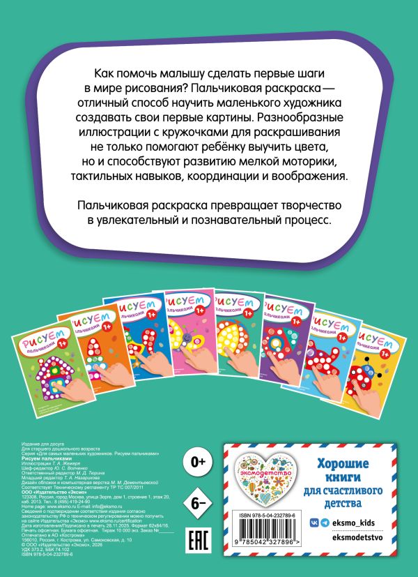 Пальчиковые раскраски развивают мелкую моторику, координацию движений, ощущение цвета и воображение малыша. Кроме того, все иллюстрации в раскрасках подписаны крупными буквами, которые тоже можно раскрасить, что также способствует развитию ребенка.