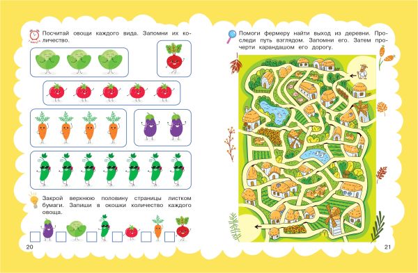 Современная школа предъявляет очень высокие требования к детям, которые поступают в 1 класс, поэтому дошкольная подготовка является важнейшим этапом для успешного старта. Эта развивашка, предназначенная для детей 5, 6, 7 лет, поможет ребенку развить зрительную и моторную память и усовершенствовать умственные способности. Каждая страница тренажера предлагает множество интересных и разнообразных упражнений, которые помогут не только потренировать, но и протестировать навык запоминания у дошкольника.