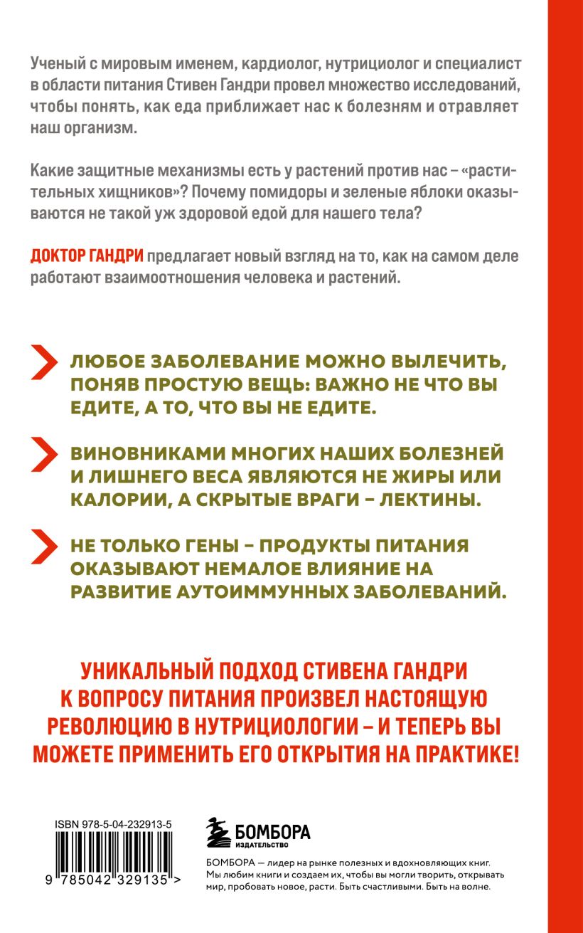 В книге "Парадокс растений" знаменитый кардиолог и кардиохирург доктор Стивен Гандри рассказывает нам об удивительных белках - лектинах, которые способны проникать в наш организм через стенки кишечника и наводить там настоящий хаос. Лектины встречаются не только в злаках вроде пшеницы, но и в продуктах, которые большинство из нас считают полезными, в том числе во многих фруктах, овощах, орехах, бобовых и магазинных молочных продуктах. Эти белки, которые содержатся в семенах, злаках, шкурках, кожуре и листьях растений, предназначены для защиты растений от хищников (в том числе и людей). Когда мы употребляем их в пищу, в организме начинается настоящая химическая война, вызывающая воспалительные реакции, которые могут привести к набору веса и серьезным проблемам со здоровьем.