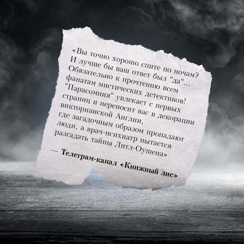 Обязательно к прочтению всем фанатам мистических детективов! "Парасомния" увлекает с первых страниц и переносит вас в декорации викторианской Англии, где загадочным образом пропадают люди, а врач-психиатр пытается разгадать тайны Литл-Оушена». — Телеграм-канал «Книжный лис»