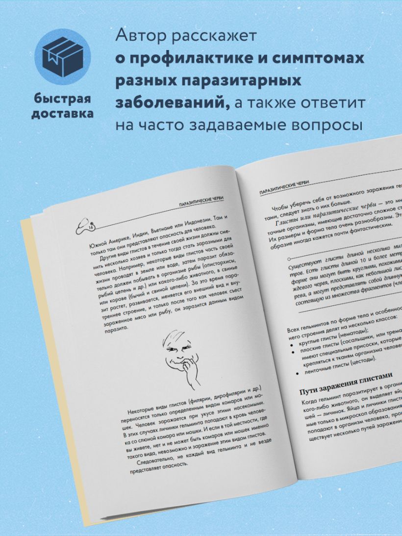 Высыпания на коже? Кашель? Бессонница? Температура? Гельминты способны на протяжении долгого времени паразитировать в организме: в кишечнике, печени, сердце, легких, отравляя жизнь хозяина. Вы узнаете, какие виды профилактики существуют, как не допустить заражения у детей и взрослых и вовремя заметить первые признаки гельминтоза. А если все-таки избежать болезни не удалось, автор книги, Нелли Тумольская, специалист в области клинической паразитологии, подскажет, какие способы лечения стоит выбрать.