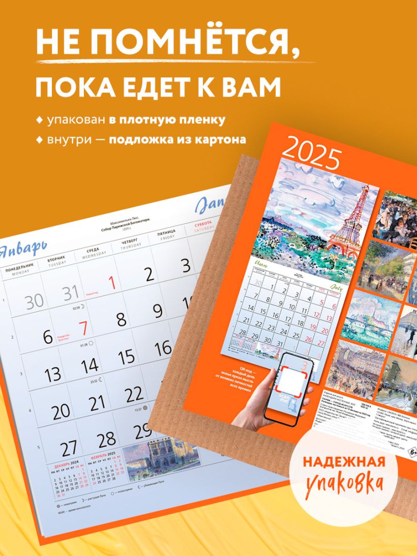 Практичный и эстетичный, этот календарь каждый месяц будет радовать вас. Прекрасные картины органично дополнят любой интерьер и помогут планировать время. В этом календаре представлены шедевры разных творцов, вдохновенных Парижем.