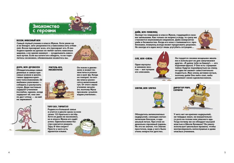 Скорее открывай книгу про насекомых и узнай, почему классу Жуков так не везёт со старостами и учителями, как жучки задолжали одновременно журчалкам, осам и пчёлам, откуда среди учеников взялся непонятный новый одноклассник с кучей ног и глаз, и многое другое!