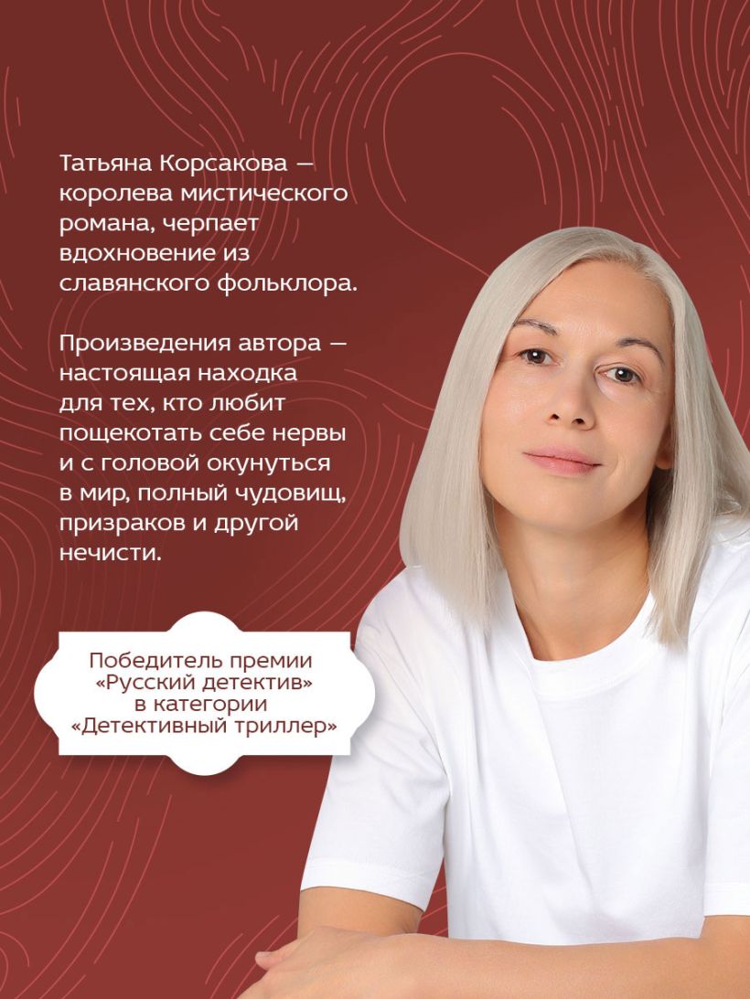 Татьяна Корсакова пишет на границе смешения жанров сентиментального романа, детектива и мистики. Почитатели любовно-авантюрных историй знают ее под псевдонимом Алиса Корсак. В ее романах есть всё: настоящая дружба, первая любовь, мистика, нетривиальный сюжет.