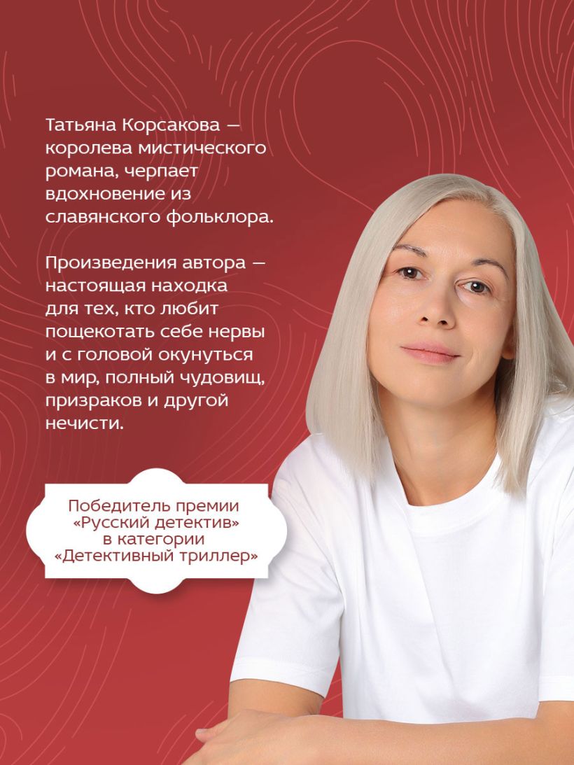 Татьяна Корсакова пишет на границе смешения жанров сентиментального романа, детектива и мистики. Почитатели любовно-авантюрных историй знают ее под псевдонимом Алиса Корсак. В ее романах есть всё: настоящая дружба, первая любовь, мистика, нетривиальный сюжет.